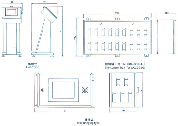 備注:1.W表示壁掛式,G表示落地式;??2.NCCS-24/36-W的控制分別由兩個或三個控制箱控制??3.NCCS-36-G增加一個控制箱;??